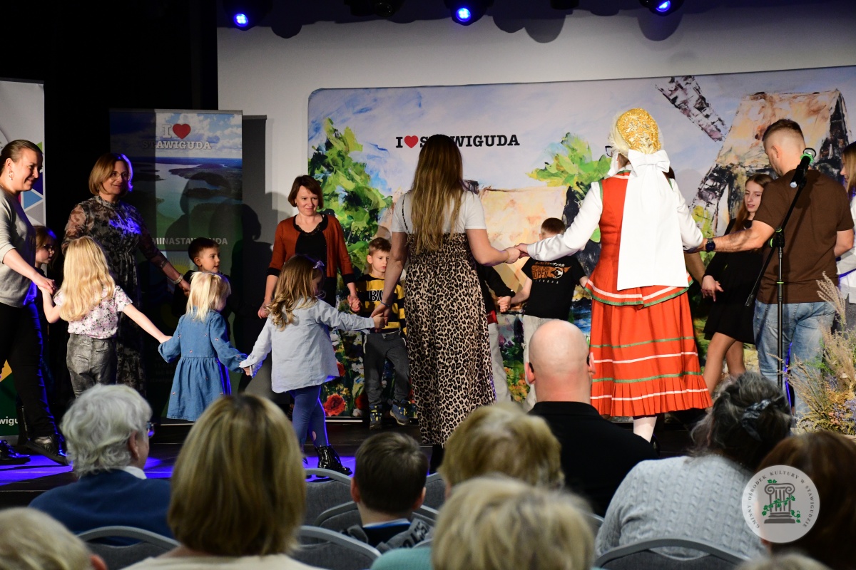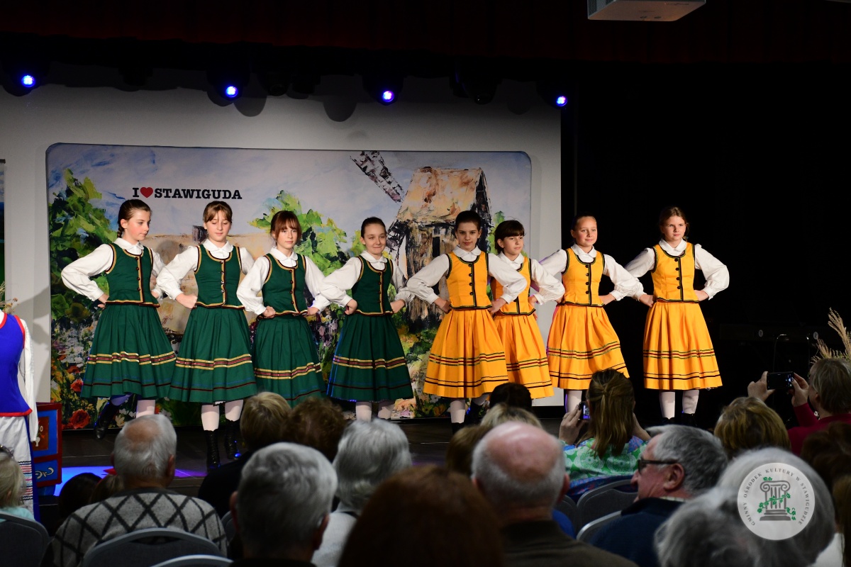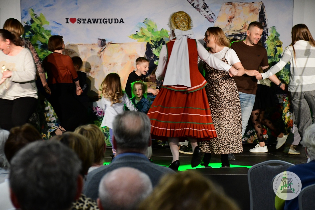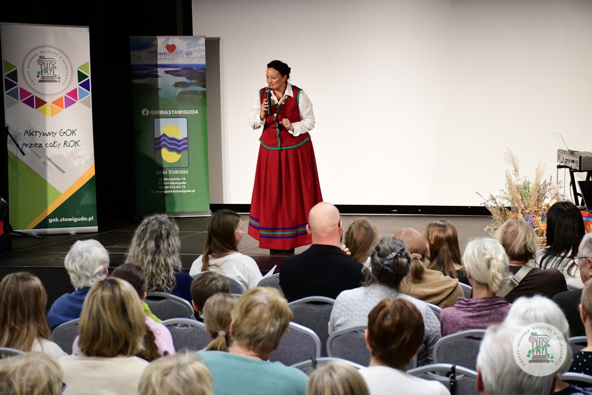 Szczególne miejsce w organizacji wieczoru zajęli Seniorzy ze Stawigudzkiego Koła Seniora, którzy nie tylko użyczyli warmińskich rekwizytów, ale również przygotowali tradycyjne kuchy, kiszone buraki i domowe przetwory. Dzięki ich zaangażowaniu GOK wypełnił się atmosferą domowej gościnności, jaka od pokoleń towarzyszy warmińskim spotkaniom.