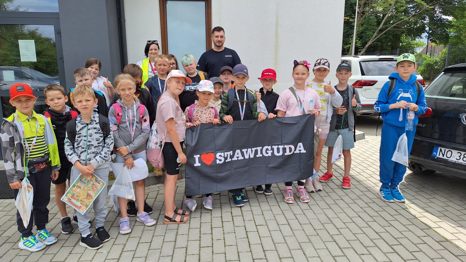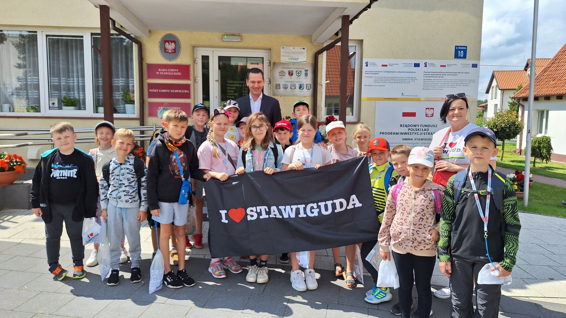 Kolejnym punktem było symboliczne przybicie „piątki” z Michał Kontraktowicz Wójt Gminy Stawiguda, pod budynkiem Urzędu Gminy. To była chwila pełna radości i dumy – dzieci z dumą prezentowały swoje zdobyte GOKi.