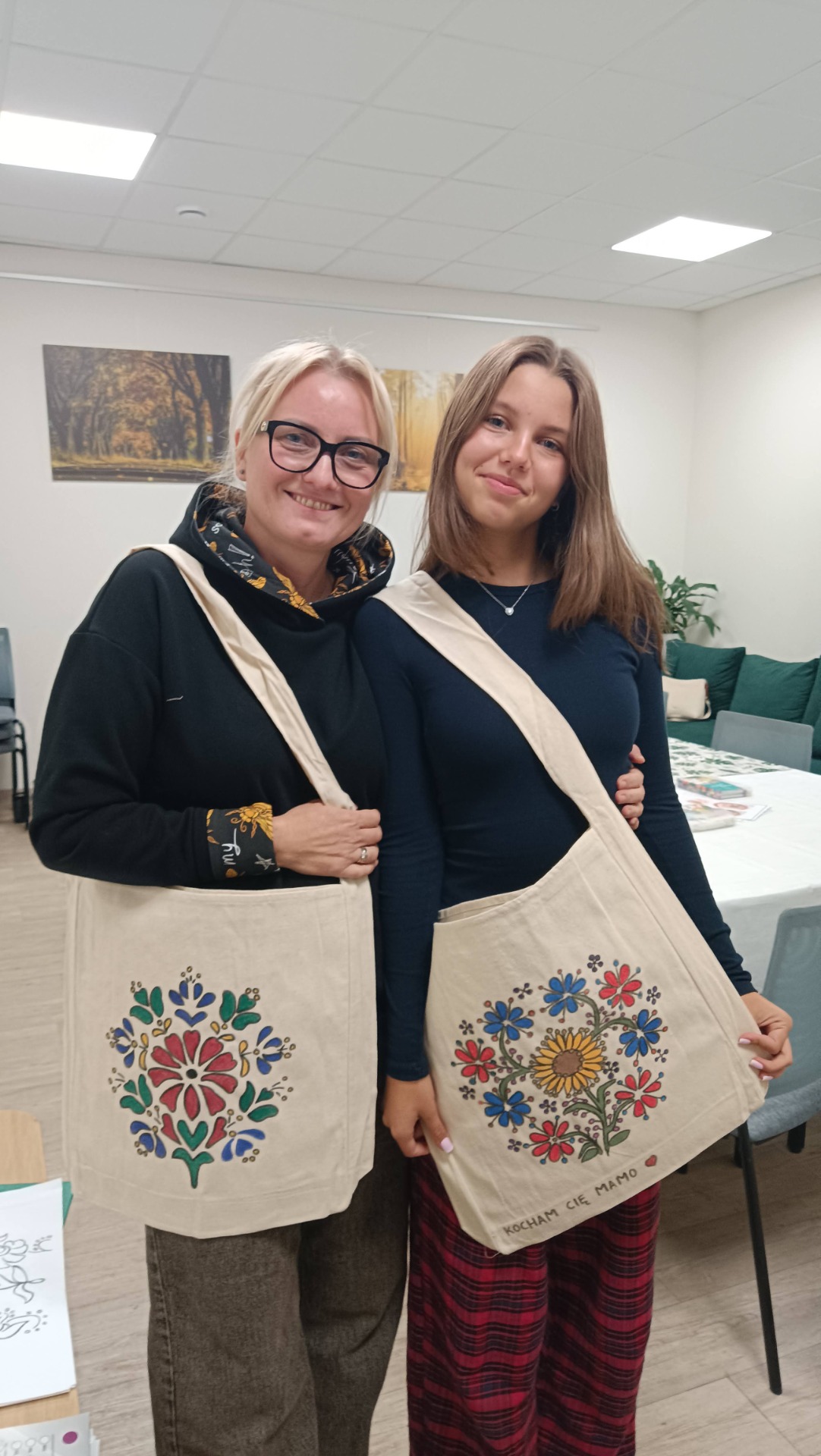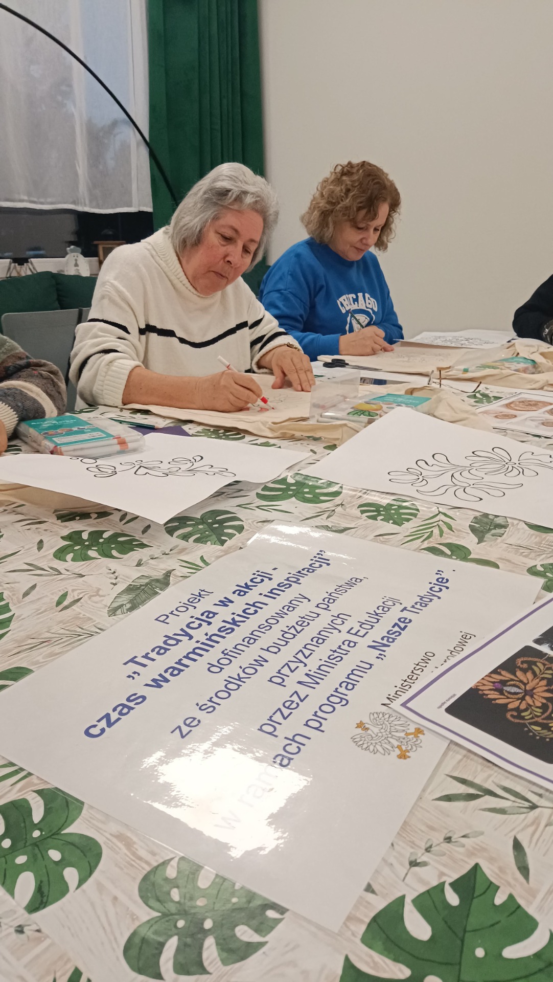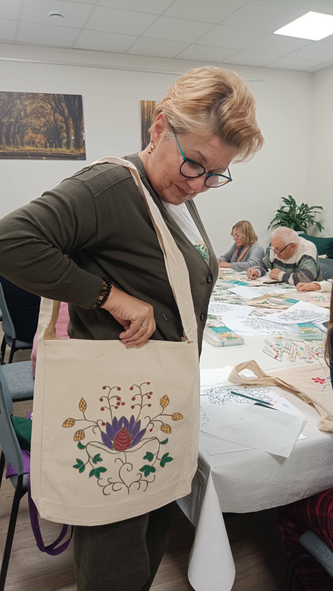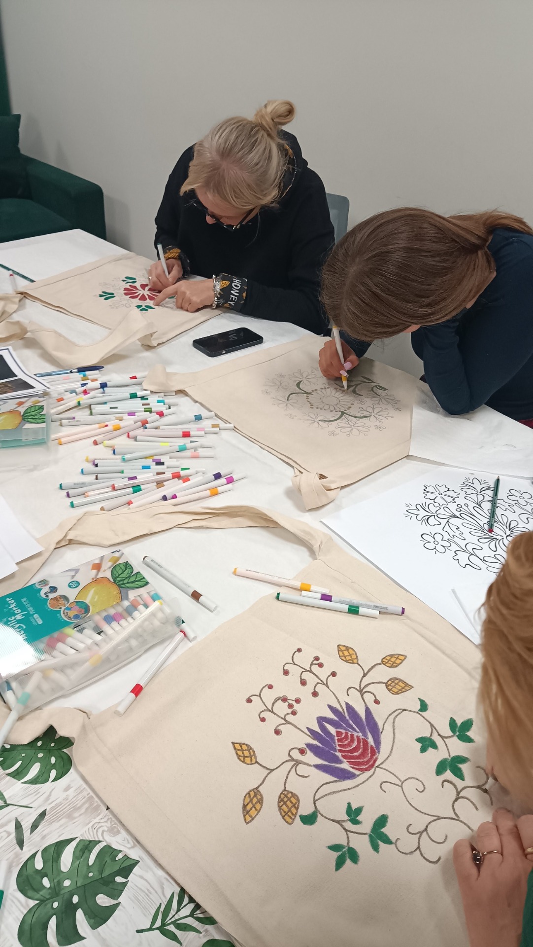 Pod okiem prowadzącej Eweliny Bladosz uczestnicy – dorośli i młodzież – z ogromnym skupieniem i uważnością tworzyli swoje unikatowe prace. Każda torba stała się małym dziełem sztuki, pełnym kolorów i warmińskich motywów. Efekty? Więcej niż zadowalające!