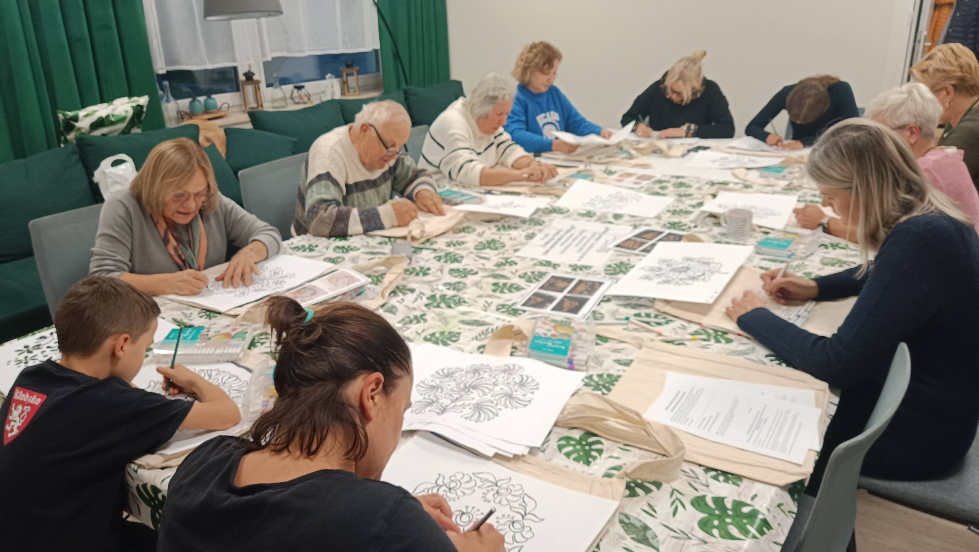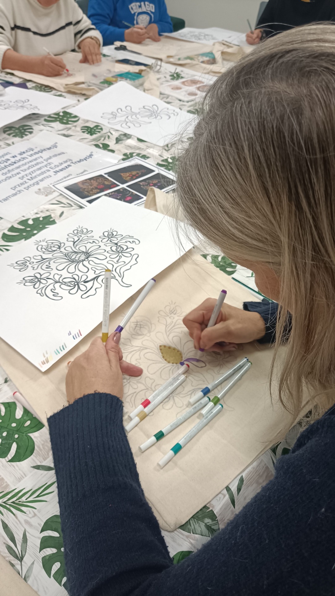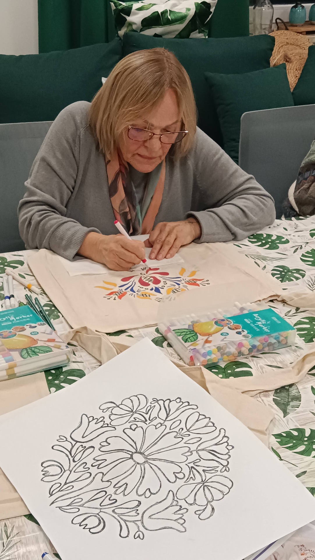 Pod okiem prowadzącej Eweliny Bladosz uczestnicy – dorośli i młodzież – z ogromnym skupieniem i uważnością tworzyli swoje unikatowe prace. Każda torba stała się małym dziełem sztuki, pełnym kolorów i warmińskich motywów. Efekty? Więcej niż zadowalające!