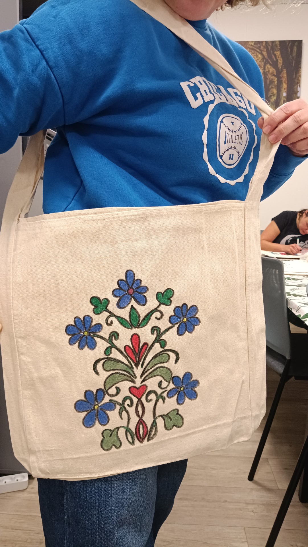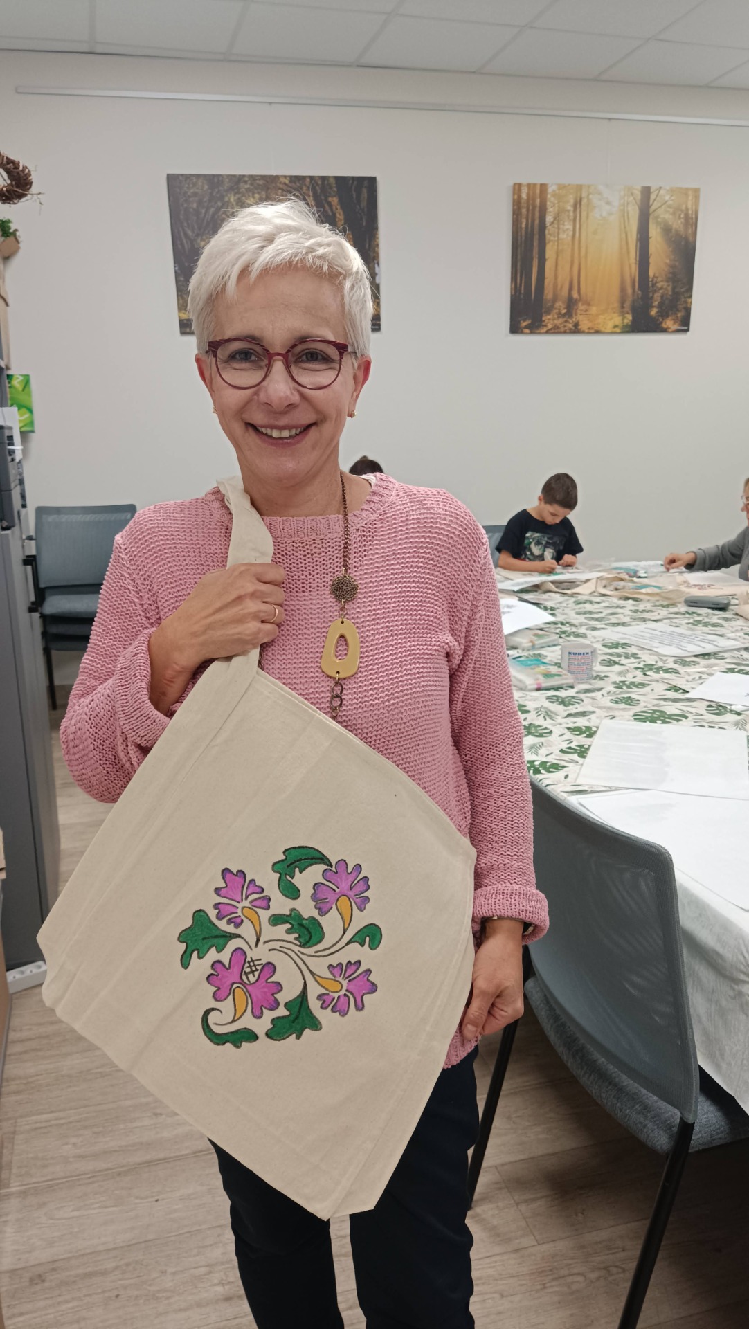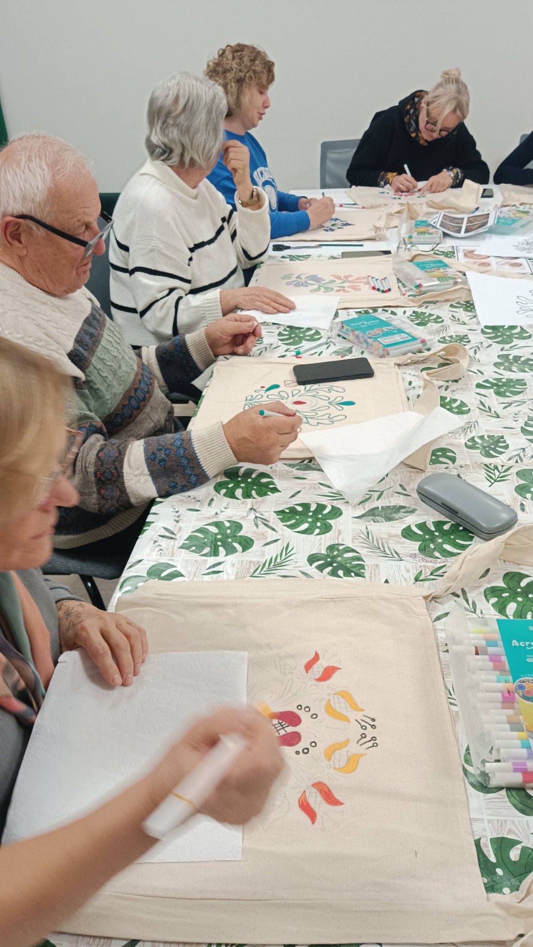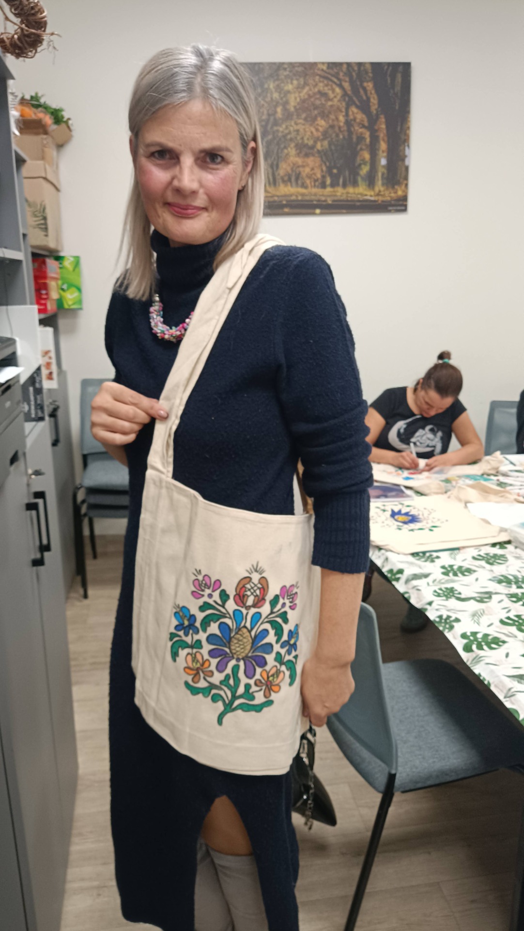 Pod okiem prowadzącej Eweliny Bladosz uczestnicy – dorośli i młodzież – z ogromnym skupieniem i uważnością tworzyli swoje unikatowe prace. Każda torba stała się małym dziełem sztuki, pełnym kolorów i warmińskich motywów. Efekty? Więcej niż zadowalające!