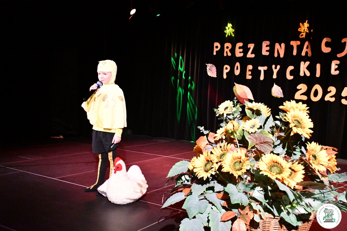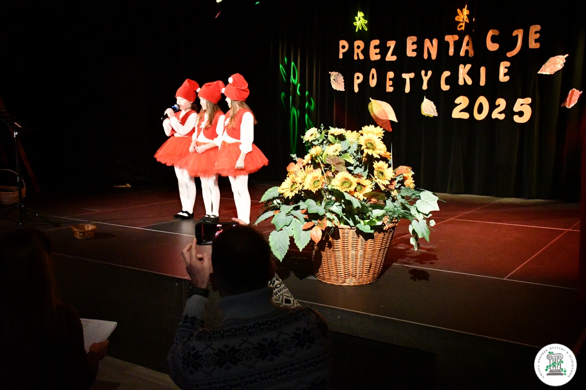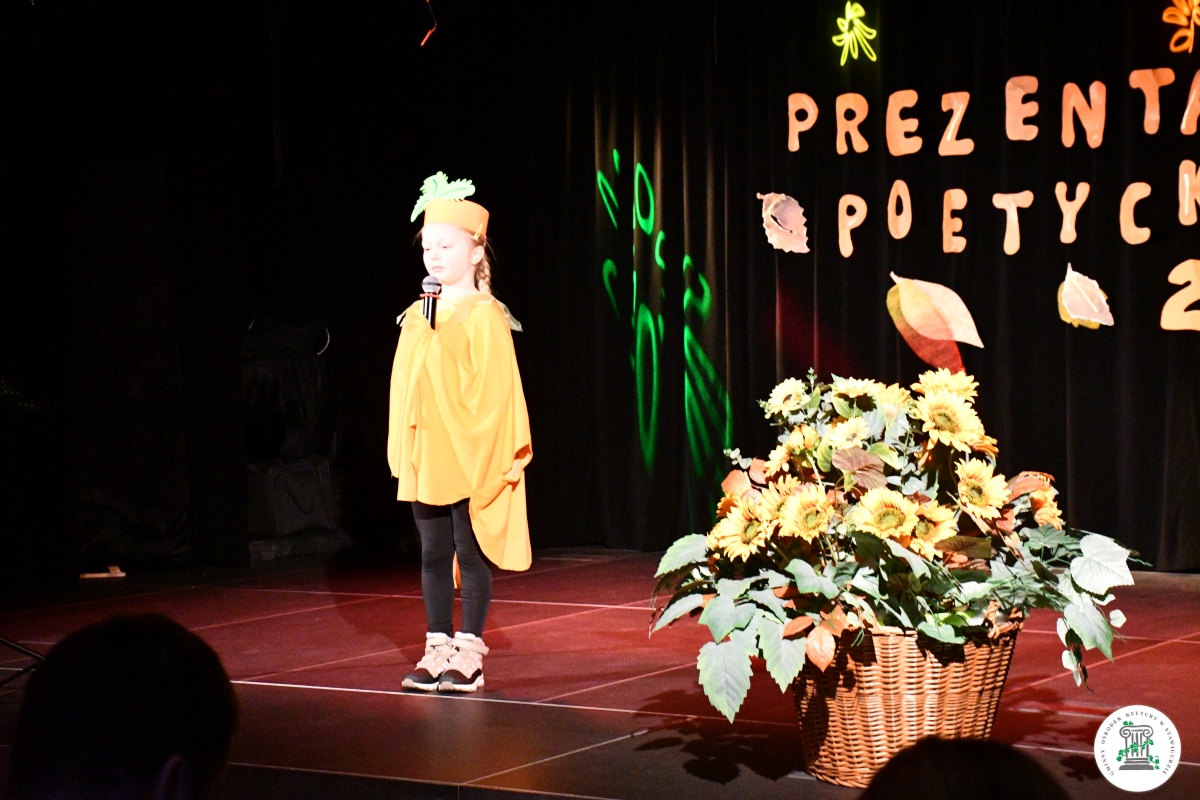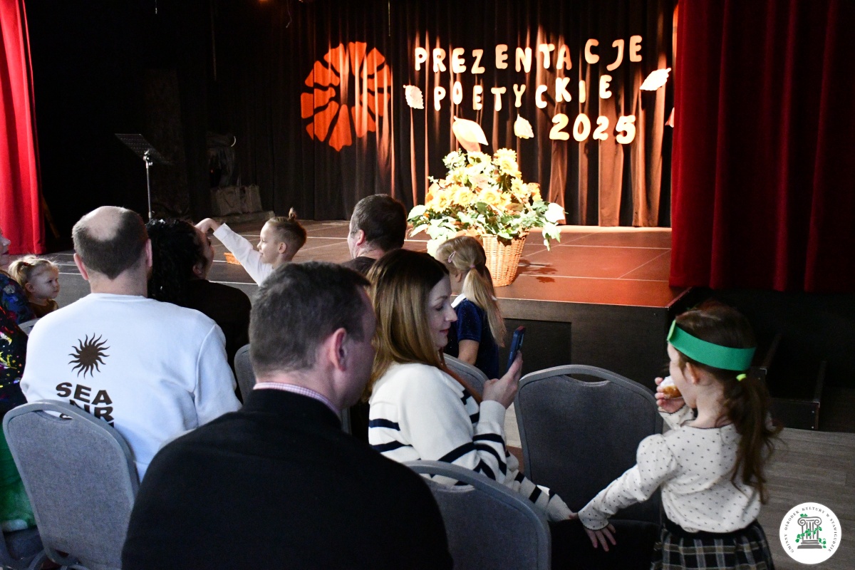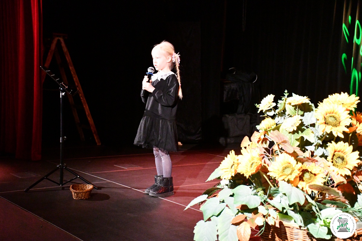 Od pierwszych chwil sala wypełniła się ciepłą, jesienną atmosferą. Mali artyści prezentowali wiersze pełne barw, nastrojów i emocji. Nie zabrakło klasyki dziecięcej poezji, ale także utworów mniej znanych, które – recytowane z dużą wrażliwością – zachwycały publiczność.