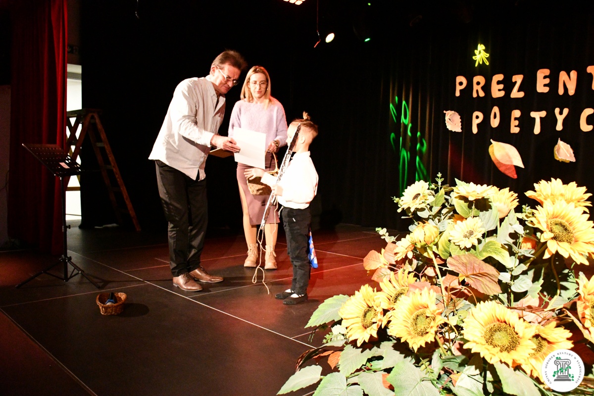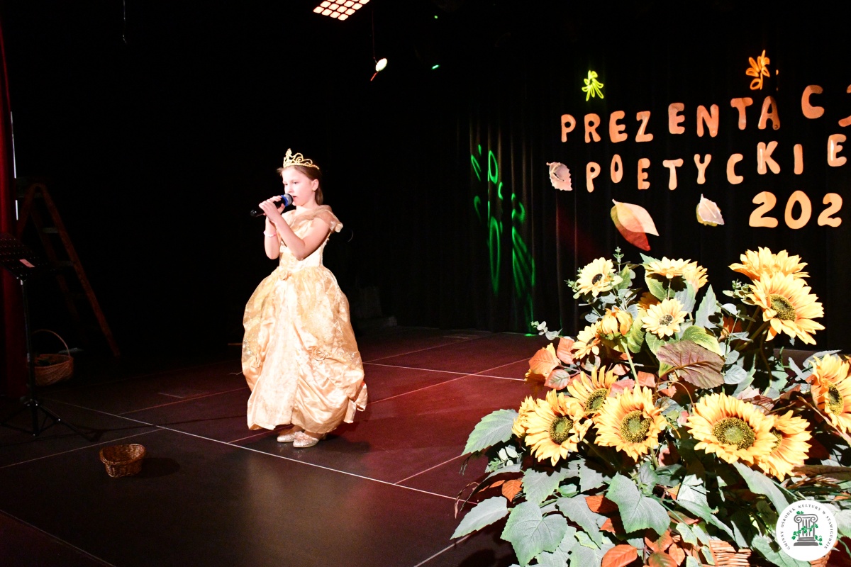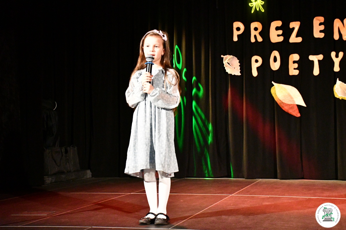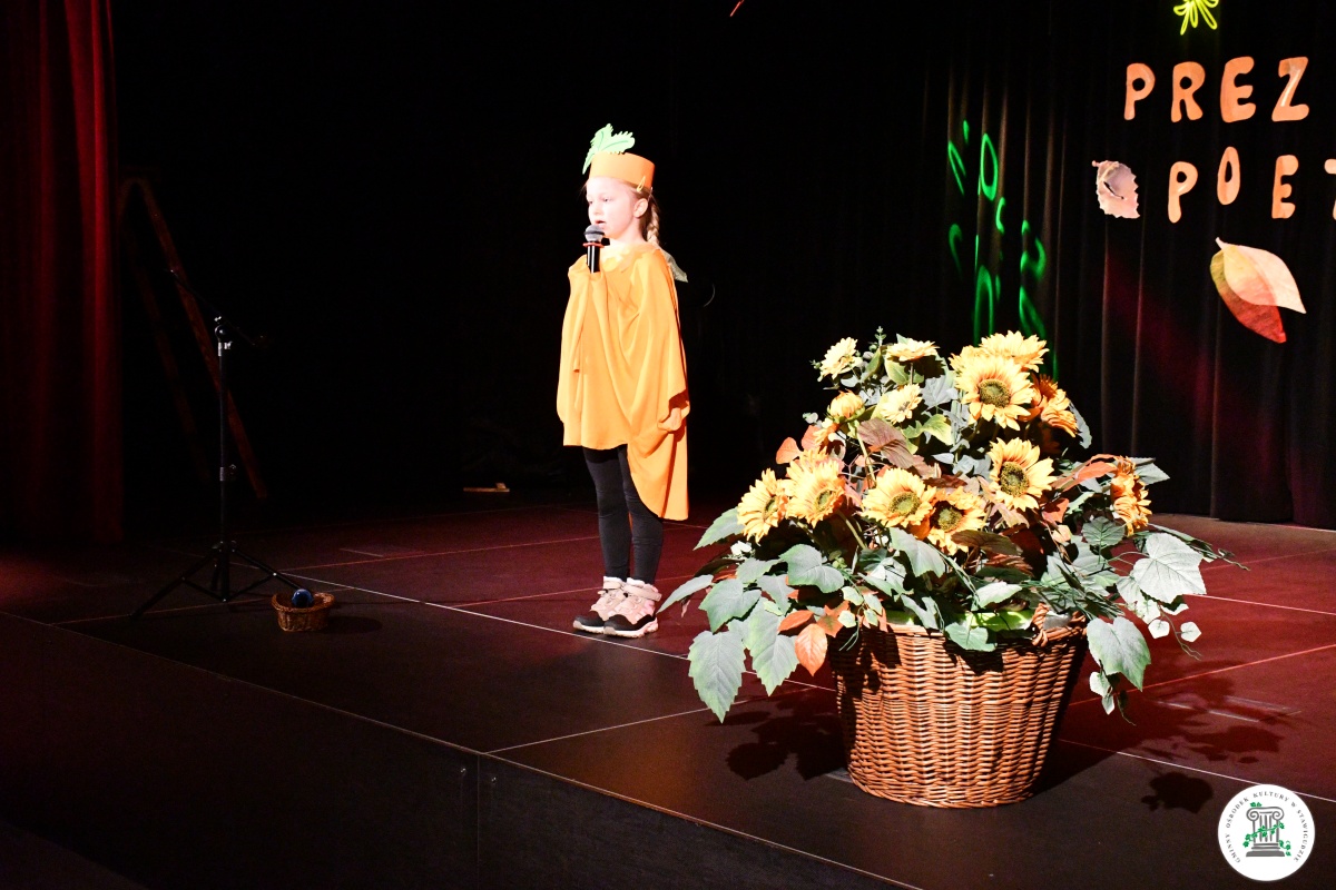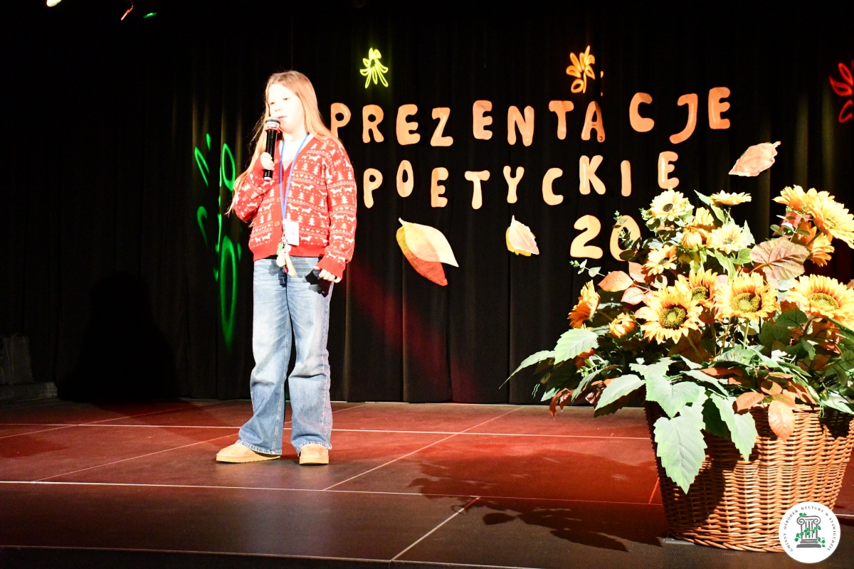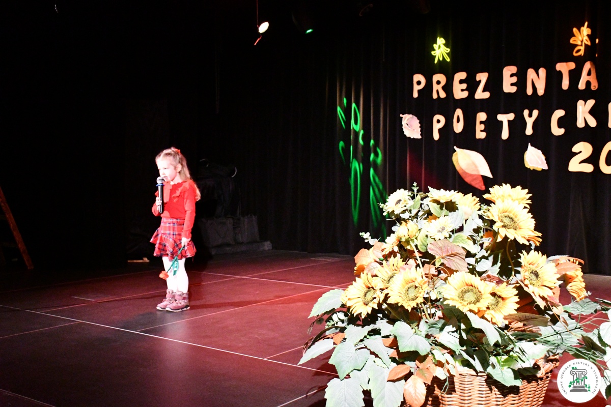 Od pierwszych chwil sala wypełniła się ciepłą, jesienną atmosferą. Mali artyści prezentowali wiersze pełne barw, nastrojów i emocji. Nie zabrakło klasyki dziecięcej poezji, ale także utworów mniej znanych, które – recytowane z dużą wrażliwością – zachwycały publiczność.