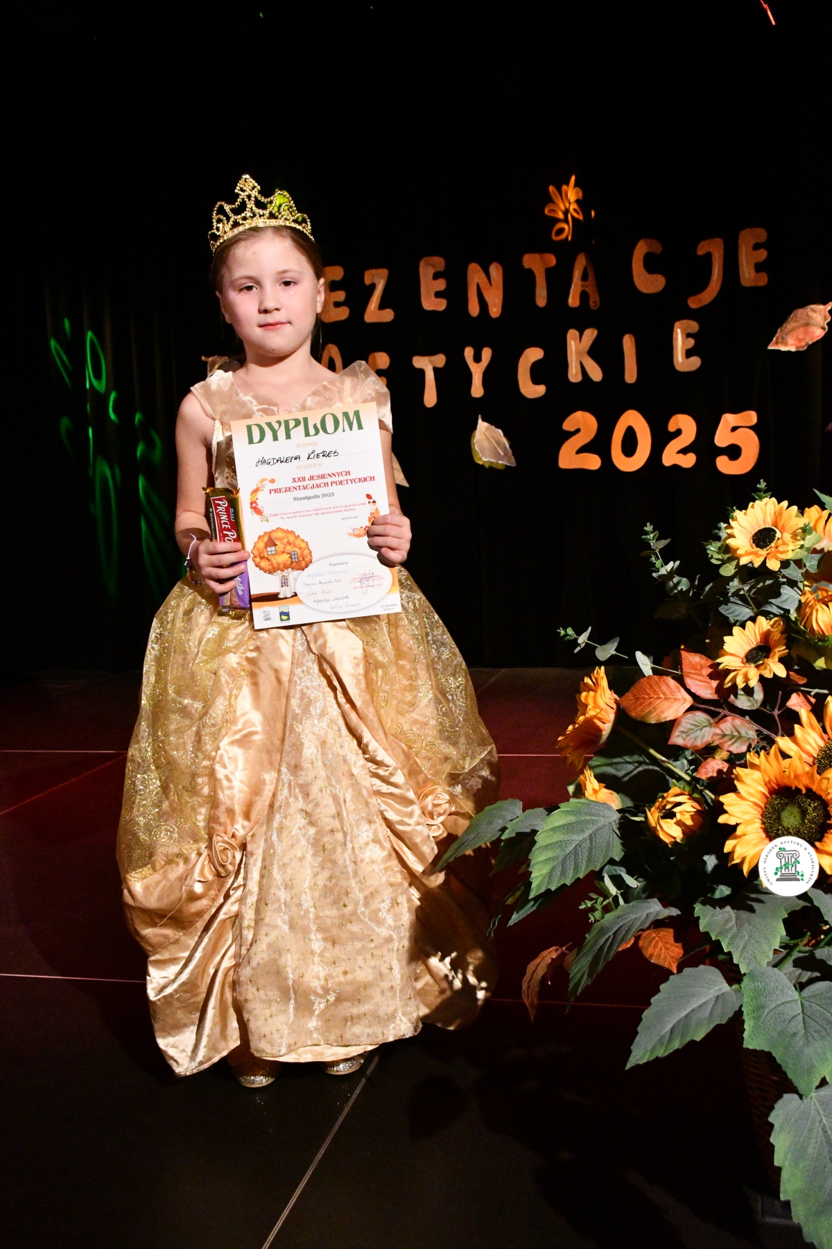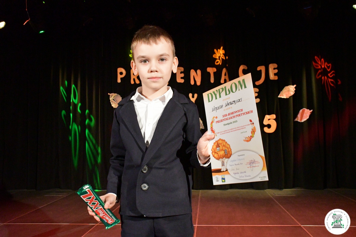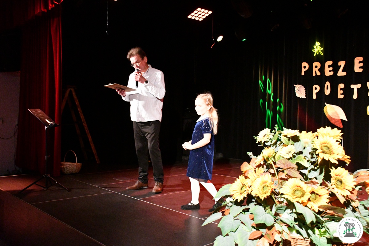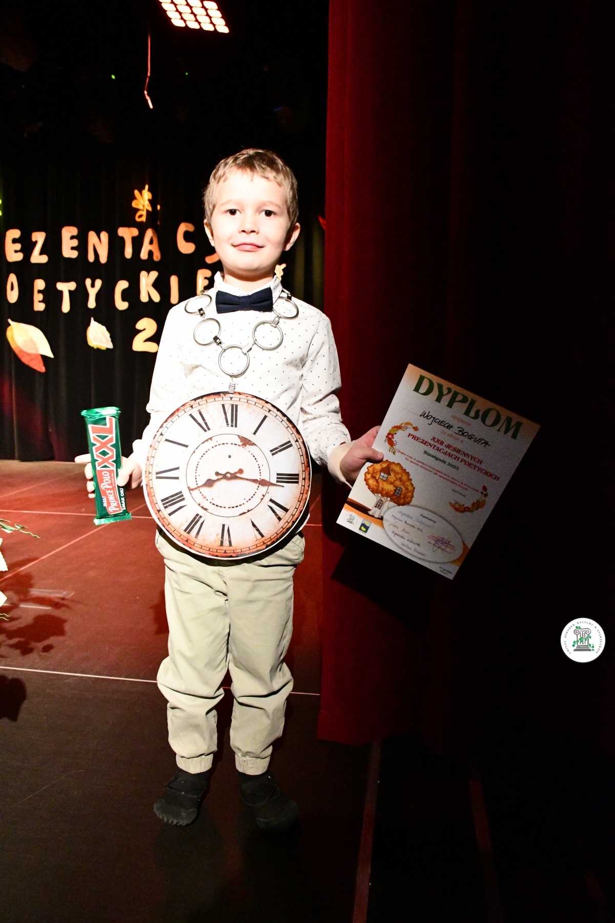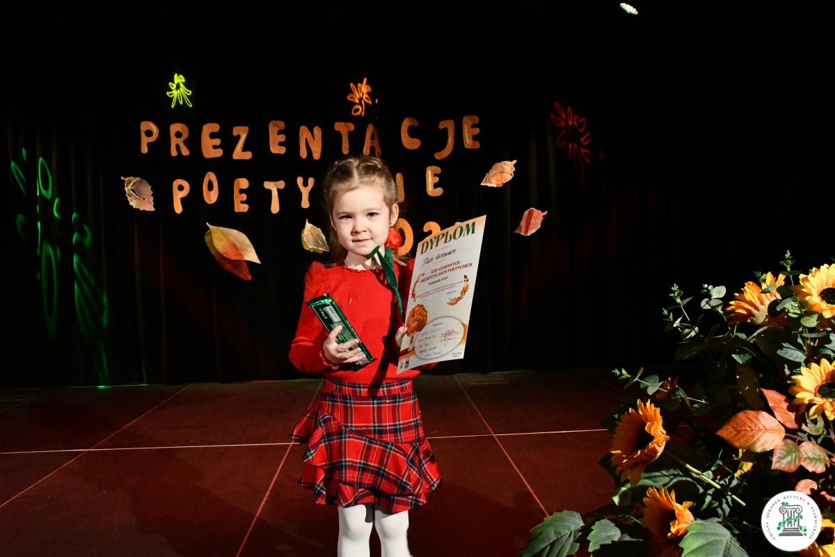 Od pierwszych chwil sala wypełniła się ciepłą, jesienną atmosferą. Mali artyści prezentowali wiersze pełne barw, nastrojów i emocji. Nie zabrakło klasyki dziecięcej poezji, ale także utworów mniej znanych, które – recytowane z dużą wrażliwością – zachwycały publiczność.
