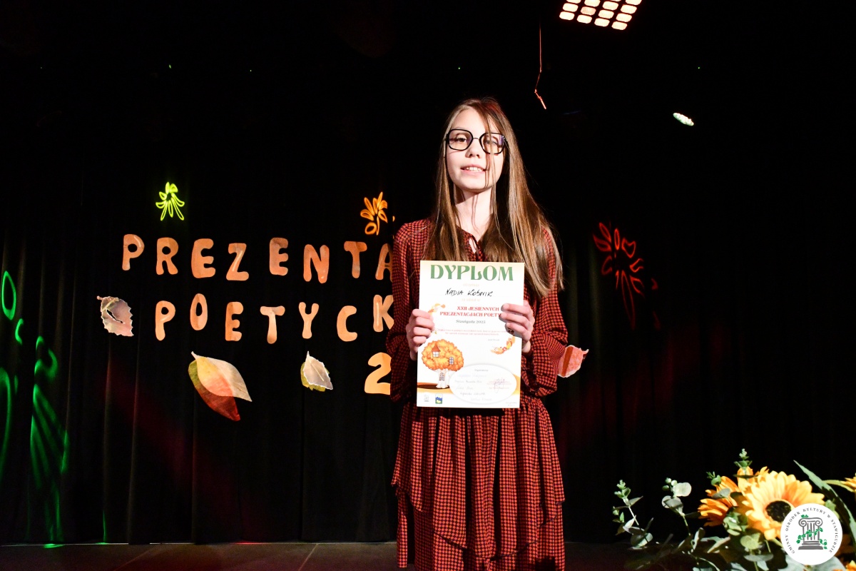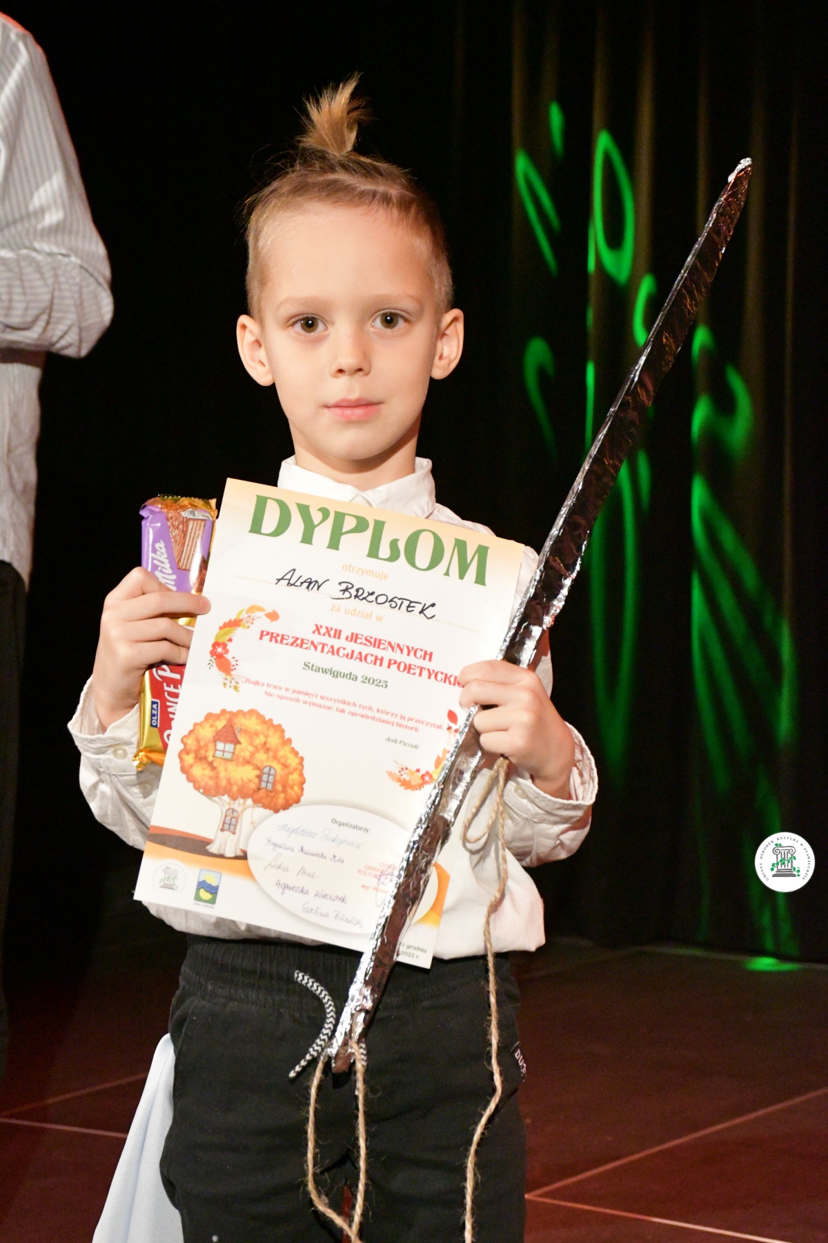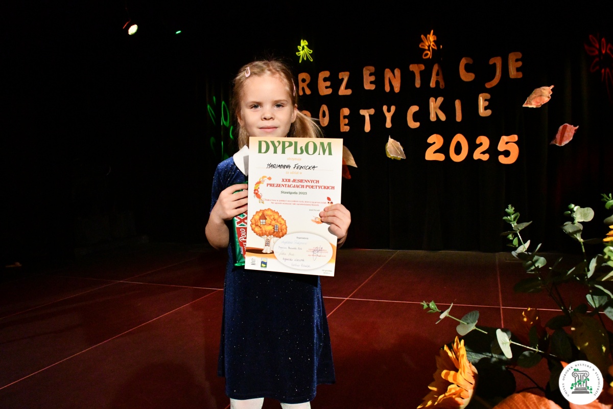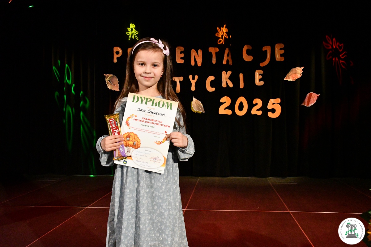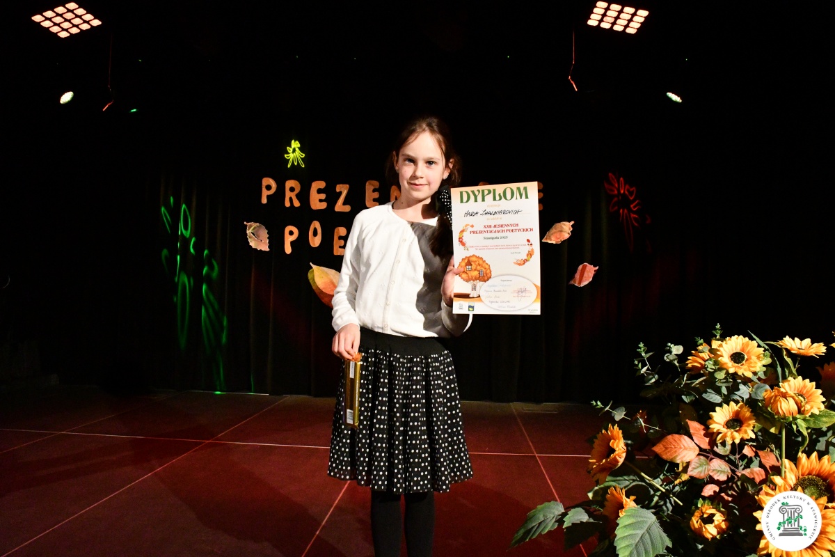 Od pierwszych chwil sala wypełniła się ciepłą, jesienną atmosferą. Mali artyści prezentowali wiersze pełne barw, nastrojów i emocji. Nie zabrakło klasyki dziecięcej poezji, ale także utworów mniej znanych, które – recytowane z dużą wrażliwością – zachwycały publiczność.