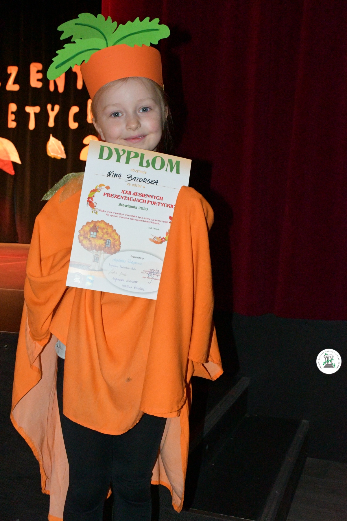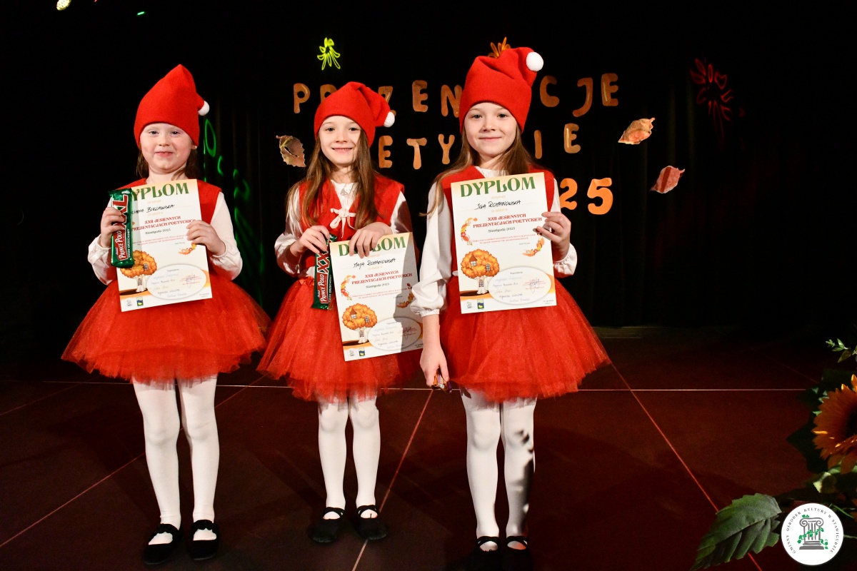 Dzieci występowały pojedynczo, a każdy występ spotykał się z gromkimi brawami. Uwagę przyciągały również piękne, stylowe stroje oraz pomysłowe rekwizyty, które podkreślały jesienny charakter prezentowanych utworów.