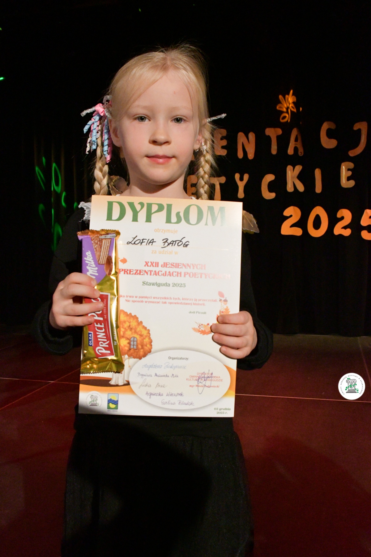 03 grudnia 2025 r. o godz. 9:00 w sali widowiskowej Gminnego Ośrodka Kultury w Stawigudzie odbyły się XXII Jesienne Prezentacje Poetyckie – wydarzenie, które od lat gromadzi najmłodszych miłośników poezji i pięknego słowa.