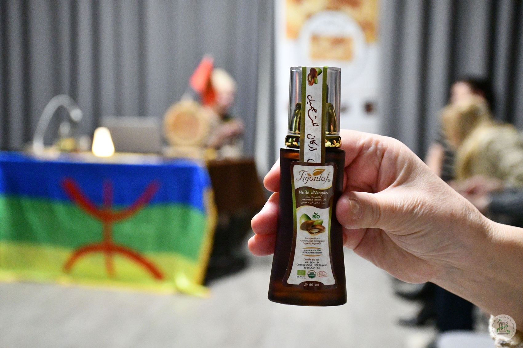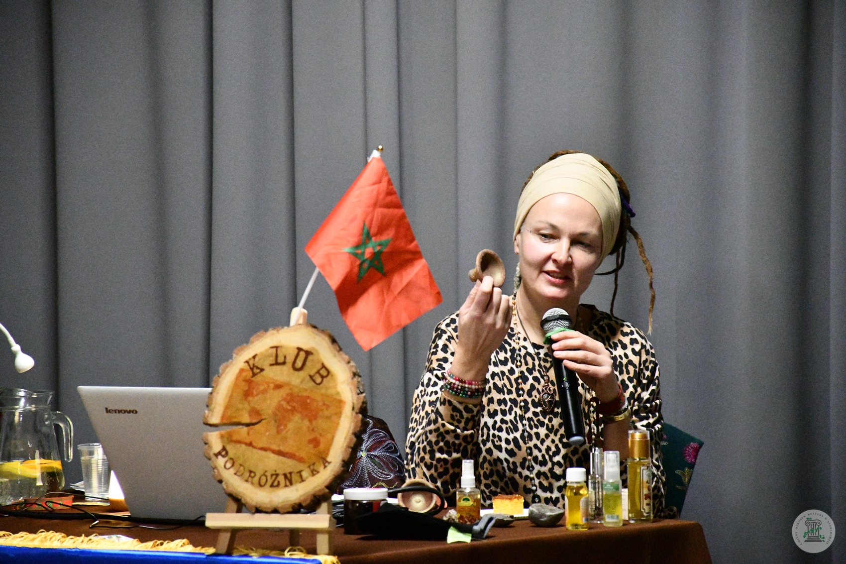 Oprócz niezwykle ciekawej prezentacji Faustyna przygotowała dla uczestników wiele dodatkowych atrakcji. Przywiozła ze sobą piękne marokańskie stroje, rękodzieło oraz naturalne kosmetyki, których można było dotknąć i powąchać, zanurzając się jeszcze głębiej w klimat Maroka. Podczas spotkania była możliwość spróbowania przepysznego pomarańczowego ciasta, przygotowanego przez koleżankę Faustyny – było słodko, aromatycznie i bardzo marokańsko.