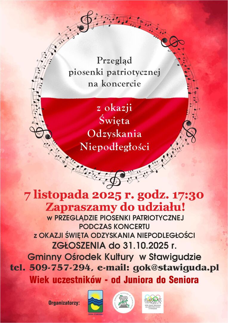 Zapraszamy do wzięcia udziału w Przeglądzie Piosenki Patriotycznej podczas koncertu z okazji Święta Odzyskania Niepodległości.